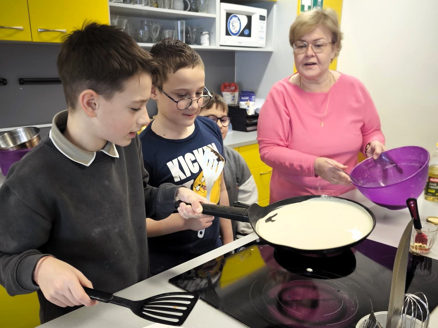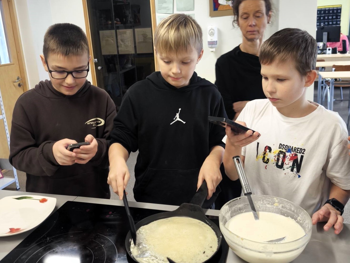 На этой неделе в школе пахнет блинами — на уроках трудового обучения ученики учатся готовить еду и радовать друг друга и своих близких. В занятиях также приняли участие ученики 4Б и 4Е классов, которые с большим удовольствием и старанием готовили блины.