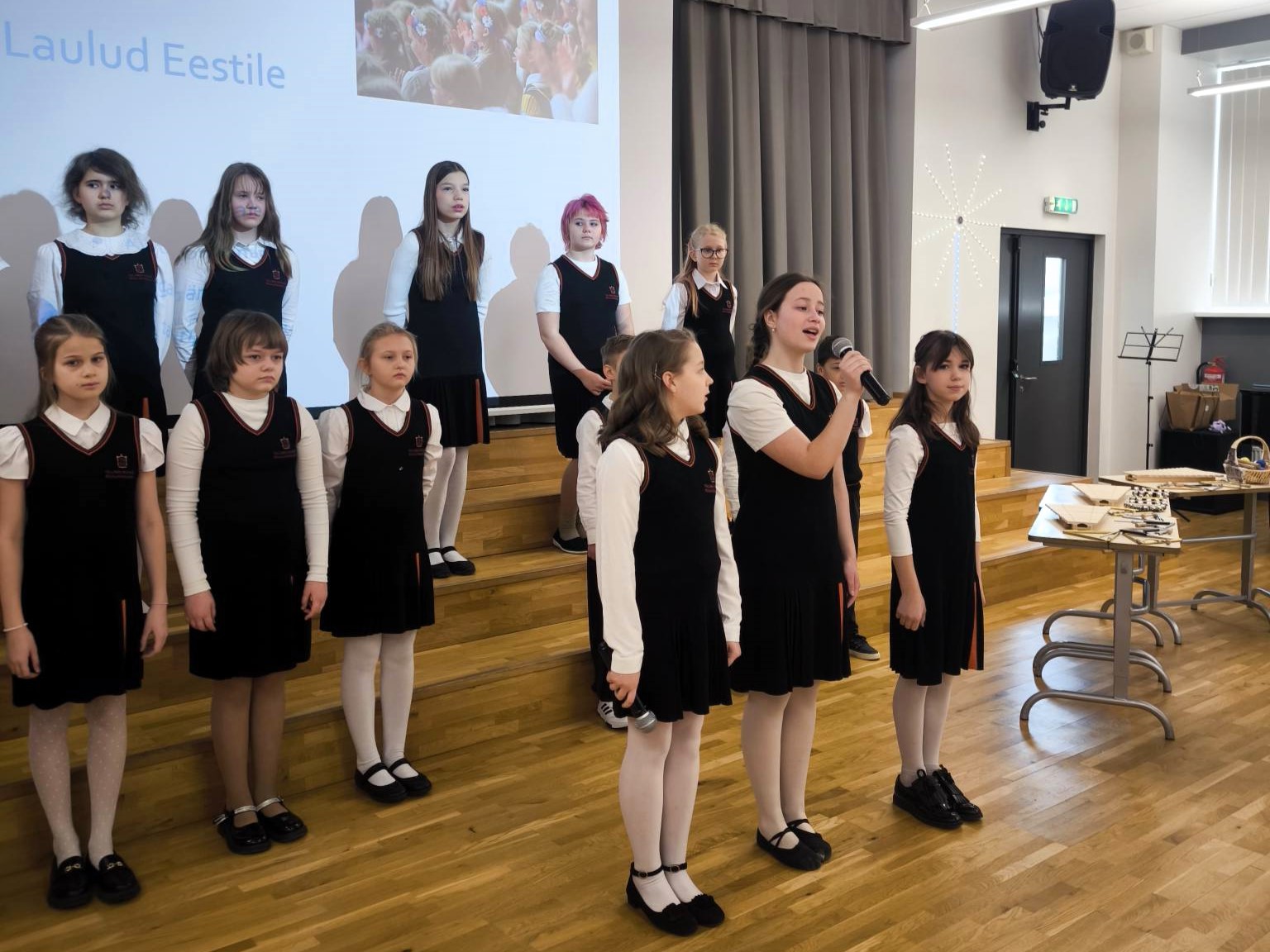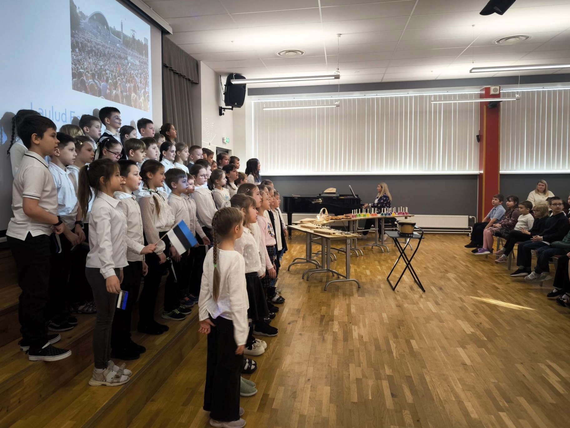 В празднике приняли участие ученики 1–3 классов. Дети пели песни об Эстонии, слушали выступление школьного хора, читали стихи, узнали интересные факты о Певческом празднике и участвовали в музыкальных играх.