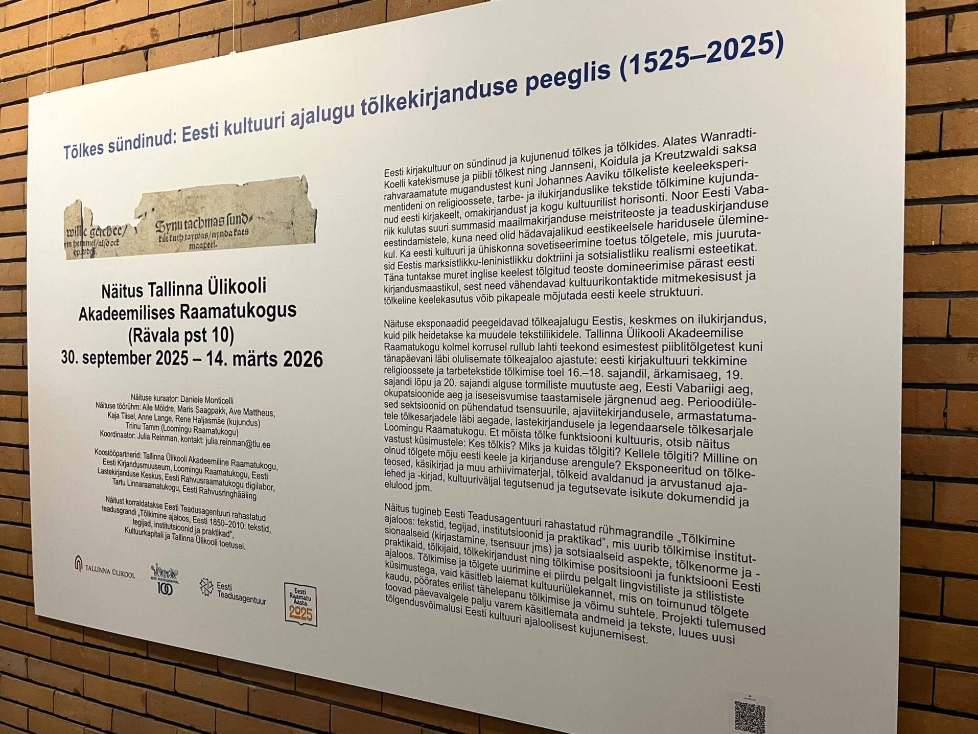 12. klass külastas näitust „Tõlkes sündinud: Eesti kultuuri ajalugu tõlkekirjanduse peeglis (1525–2025)”