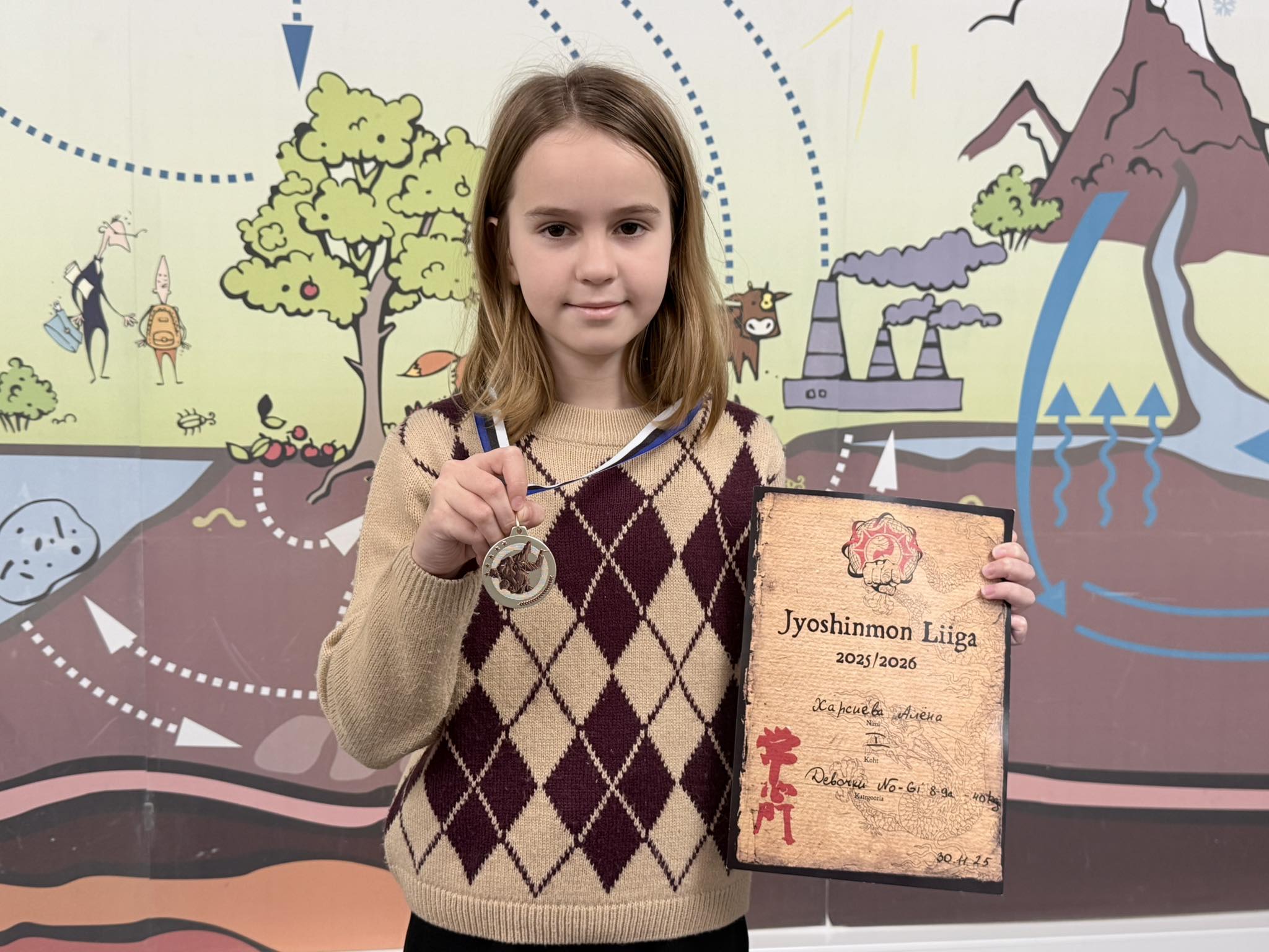 Palju õnne! 3.​b klassi õpilane ​Aljona Kharsiieva 30.novembril karate võistlustel “Jyoshinmon Liiga 2025” No-Gi kategoorias sai ​1.koha. Tubli!