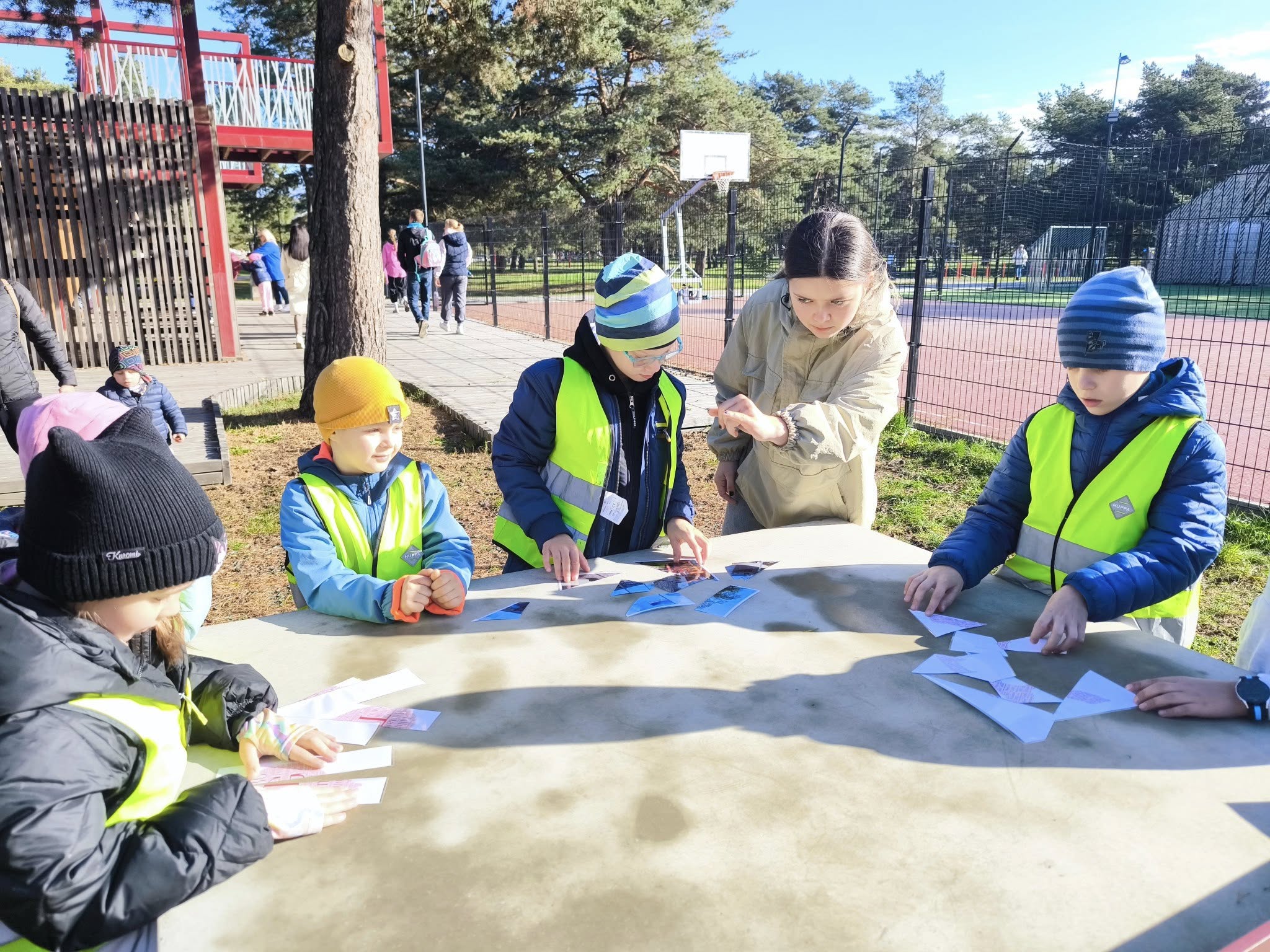 Pühitsemine esimese klassi õpilasteks ja orienteerumismäng Männi pargis.